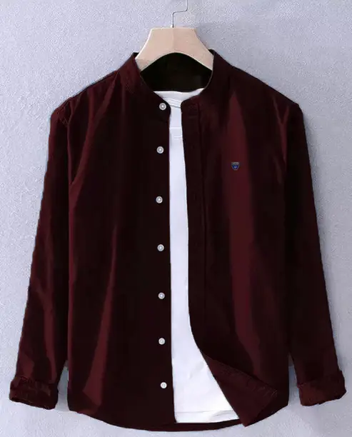 Men Regular Fit Solid Mandarin Collar Casual Shirt